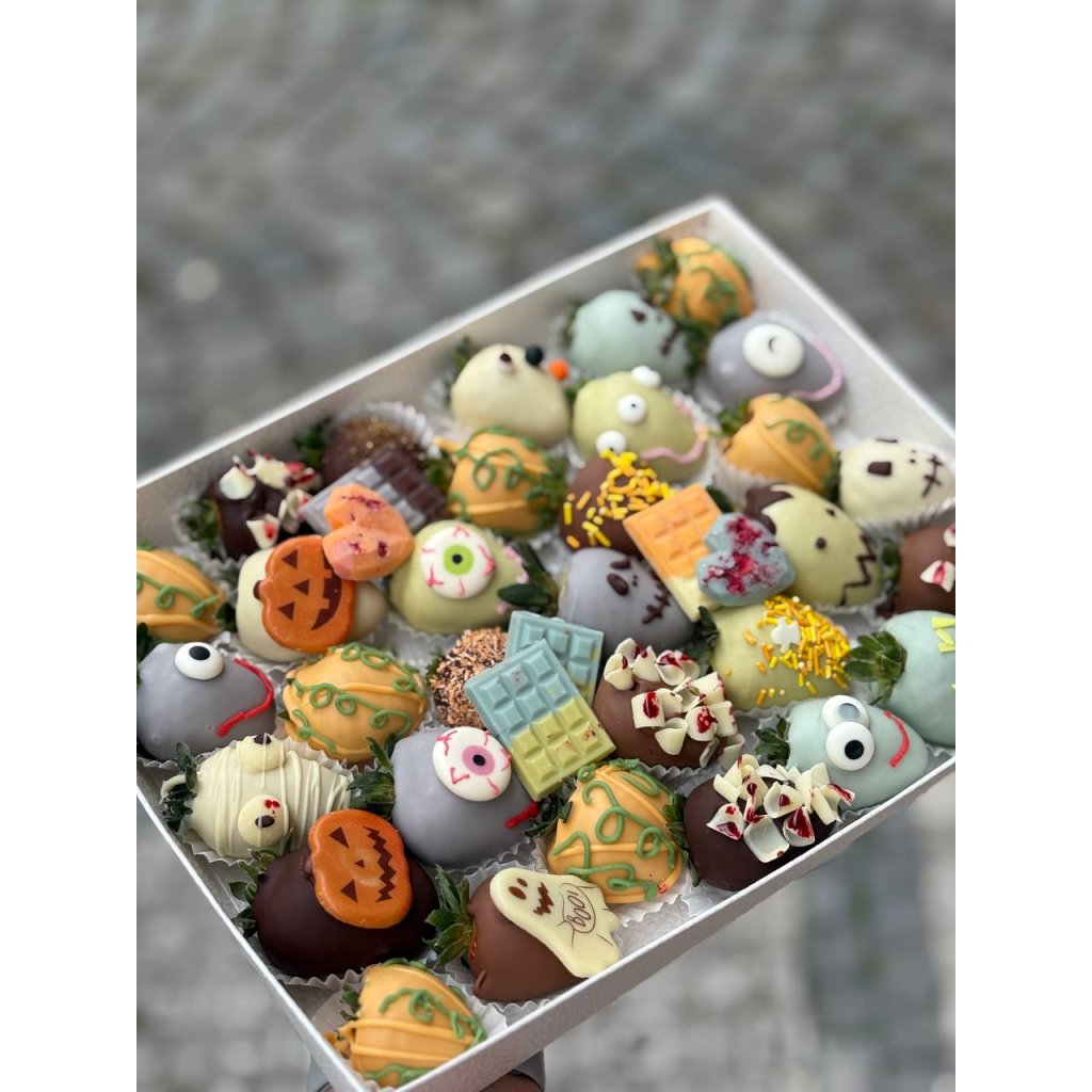 Při tvorbě vlastního designu a chutě můžete vybírat z bohaté nabídky čokolády různých barev (bílá, hořká, modrá, růžová, mlečná, zelená,fialová, žlutá, oranžová), ořechů, kokosových vloček a kořalek.